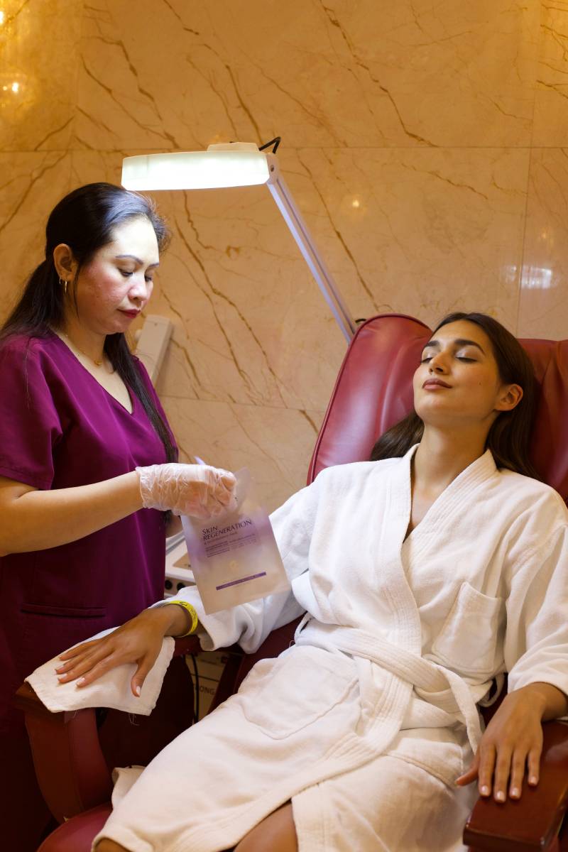تمتع بفوائد ماء الورد المنعش والمهدئ لبشرتك، واستمتع بتجربة طينة البحر الميت المرطبة والعلاجية لجسمك بالكامل. كما يمكنك اختيار مقشر اللافندر لتجربة مميزة.